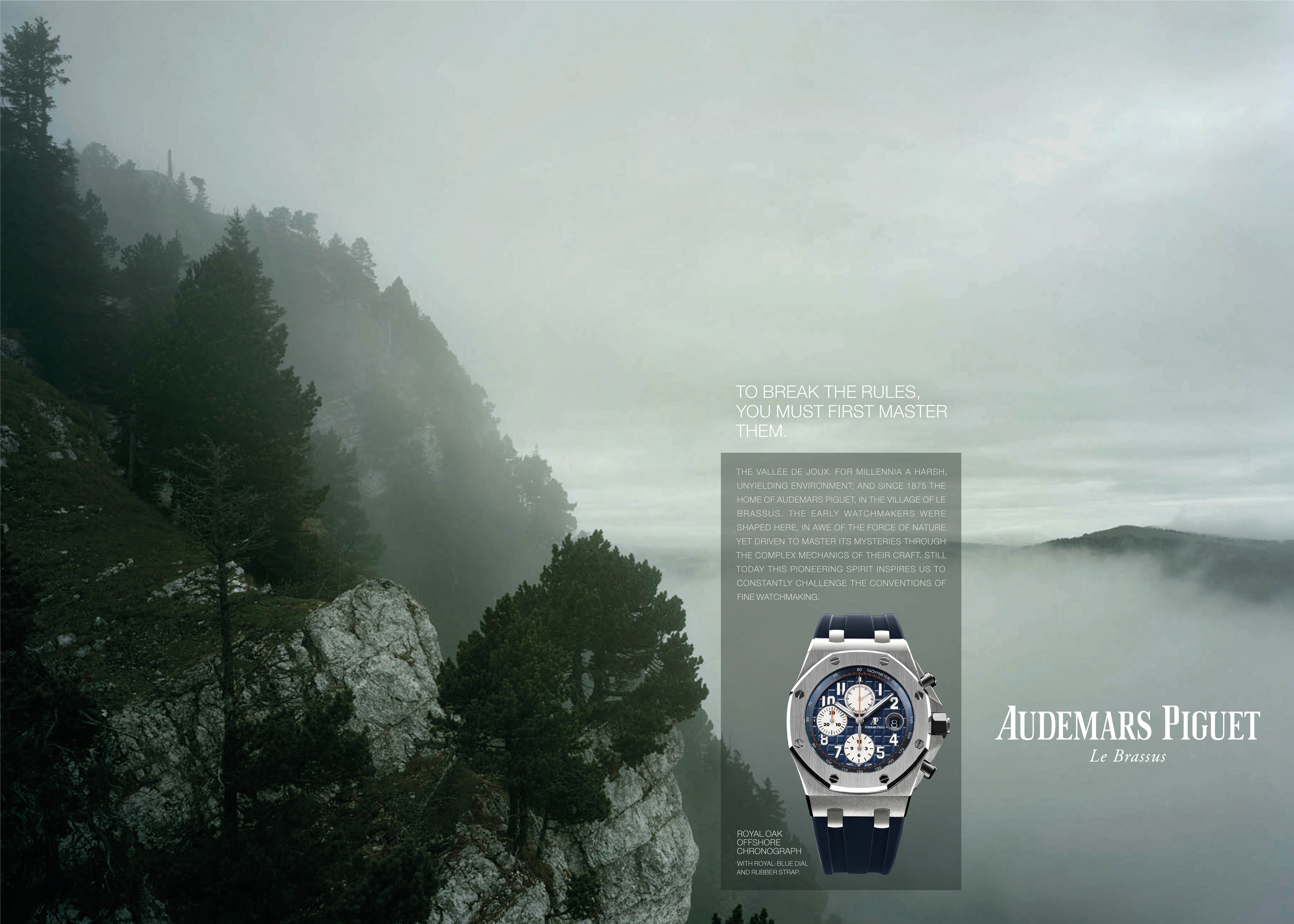 Creative direction, campaign design and execution for MullenLowe in London The brand campaign design is based on the photographic work of UK artist Dan Holdsworth. The stunning images of the Vallée de Joux around Le Brassus in Switzerland are visual and strategic centerpiece of APs combined, brand- and product-campaign.